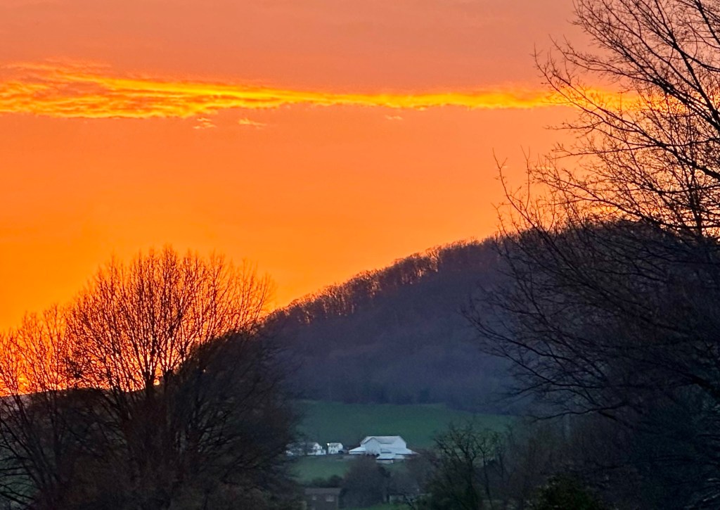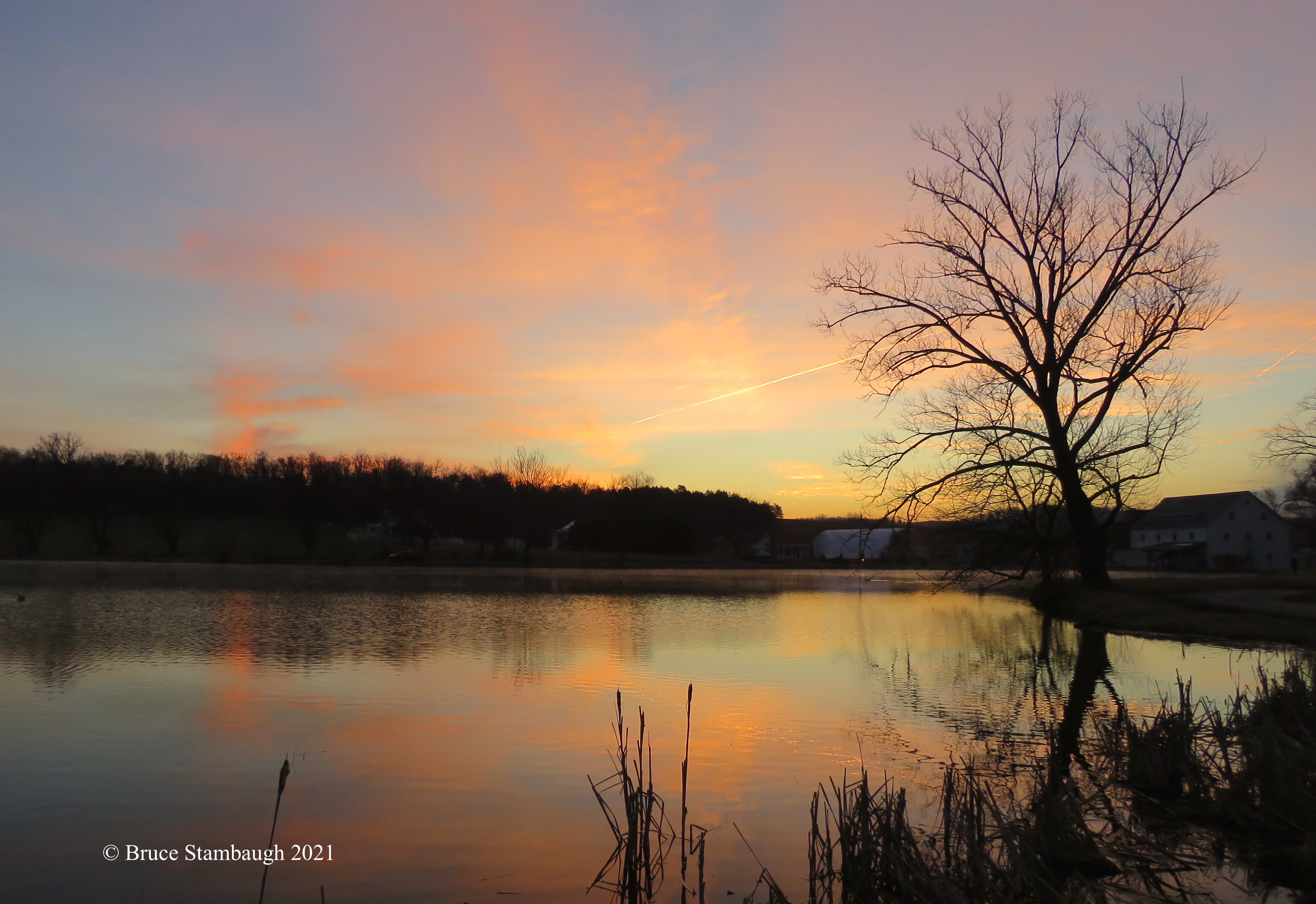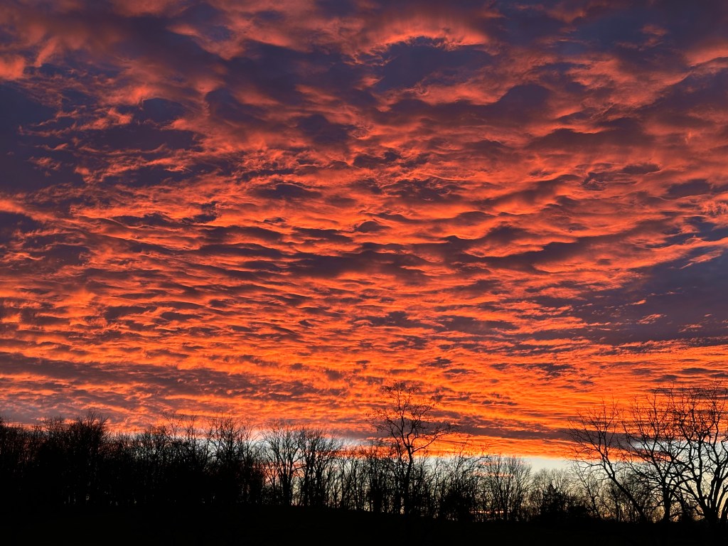 I hoped for an equally pretty sunset, but it wasn’t to be. A bank of clouds ahead of an approaching snowstorm eliminated that possibility. However, in the northeast sky, December’s Super Full Cold Moon defied the odds and peeked through the high, wispy, cirrus clouds.