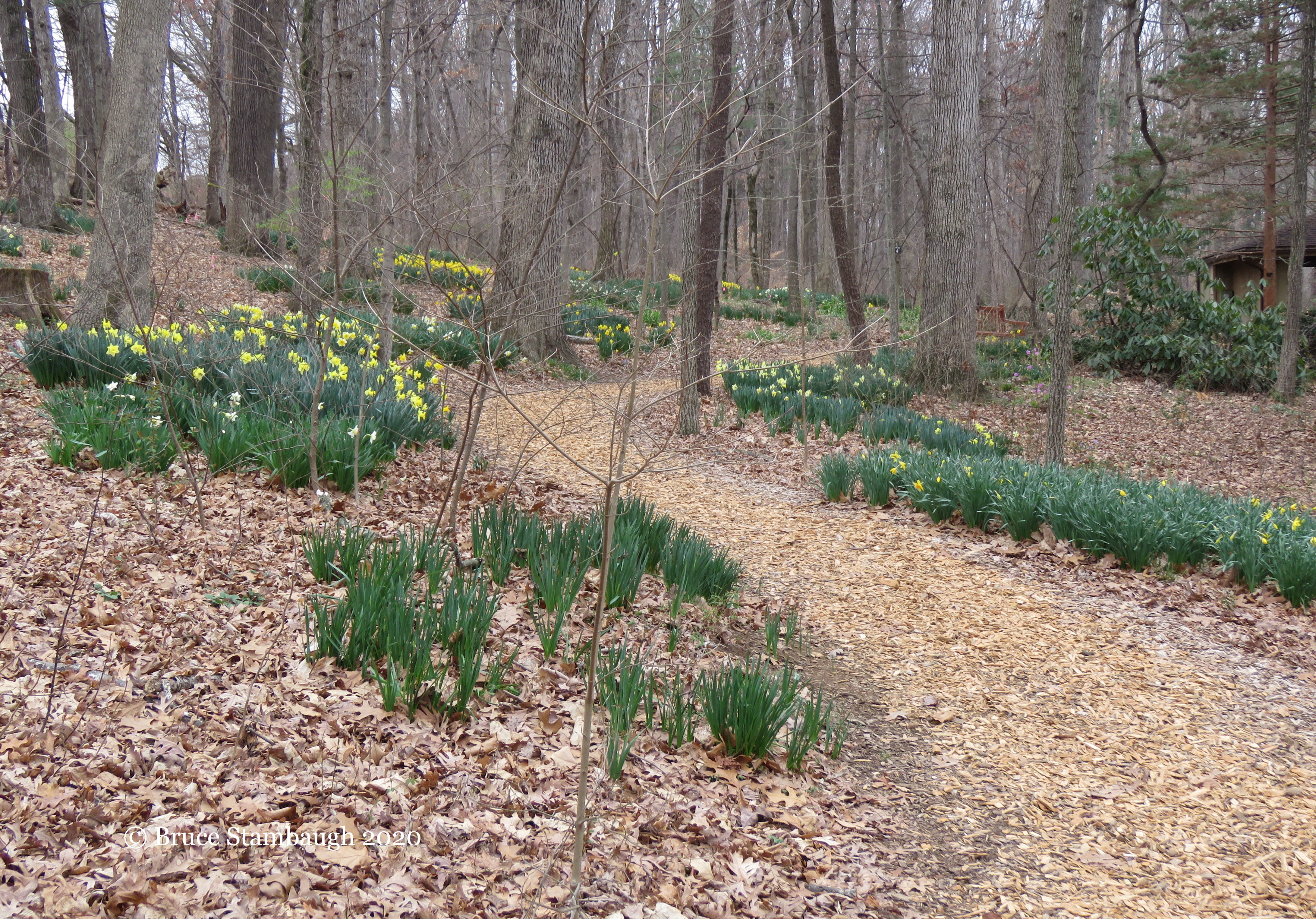 We turned onto a narrow, notoriously bumpy road that led to a mountain reservoir. A stream rushed between the mountains’ steep, forested foothills, marking the boundary between Virginia and West Virginia. Mint-colored leaves had only sprouted, allowing views of rock-filled talus slopes.