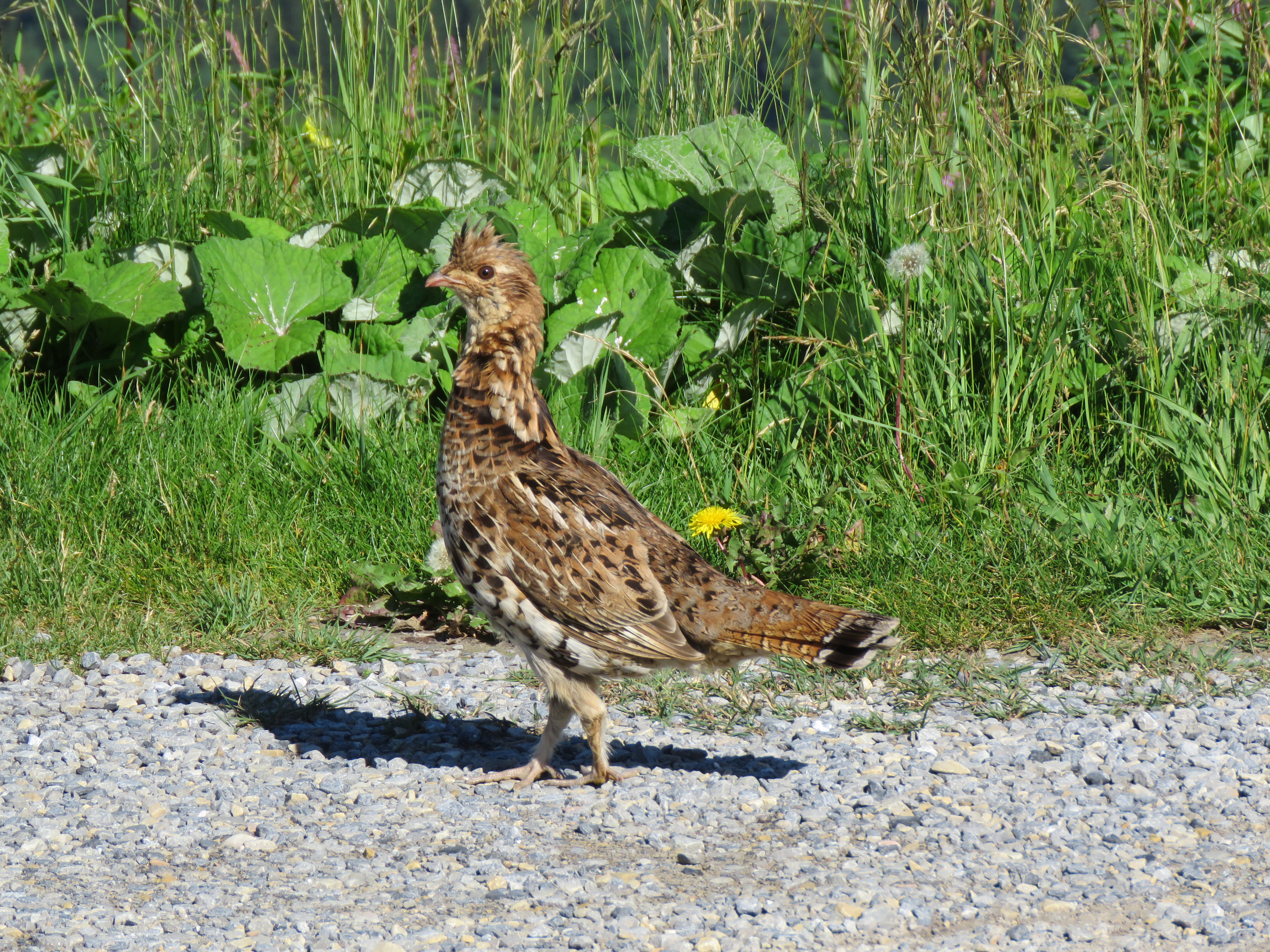 Since we both like to hike, we visited Spruce Knob, the highest point in West Virginia. It’s an hour and a half drive for us. We left mid-morning, but Davis didn’t take long to nod. How he could snooze in all that hilly, twisting driving I was doing, I don’t know. He woke as I slowed to photograph a Ruffed Grouse strutting its stuff on the Forest Service road near the mountain top.