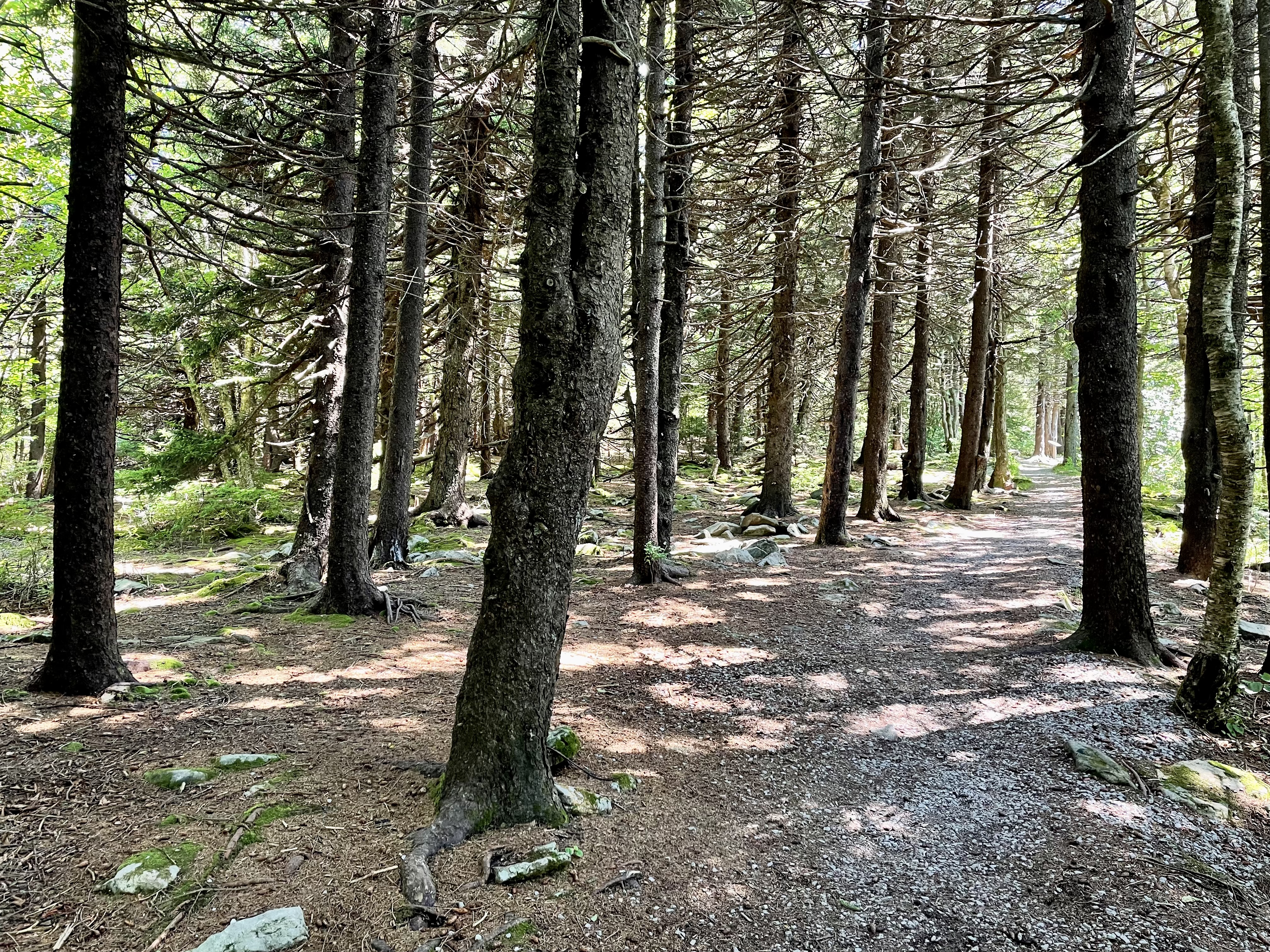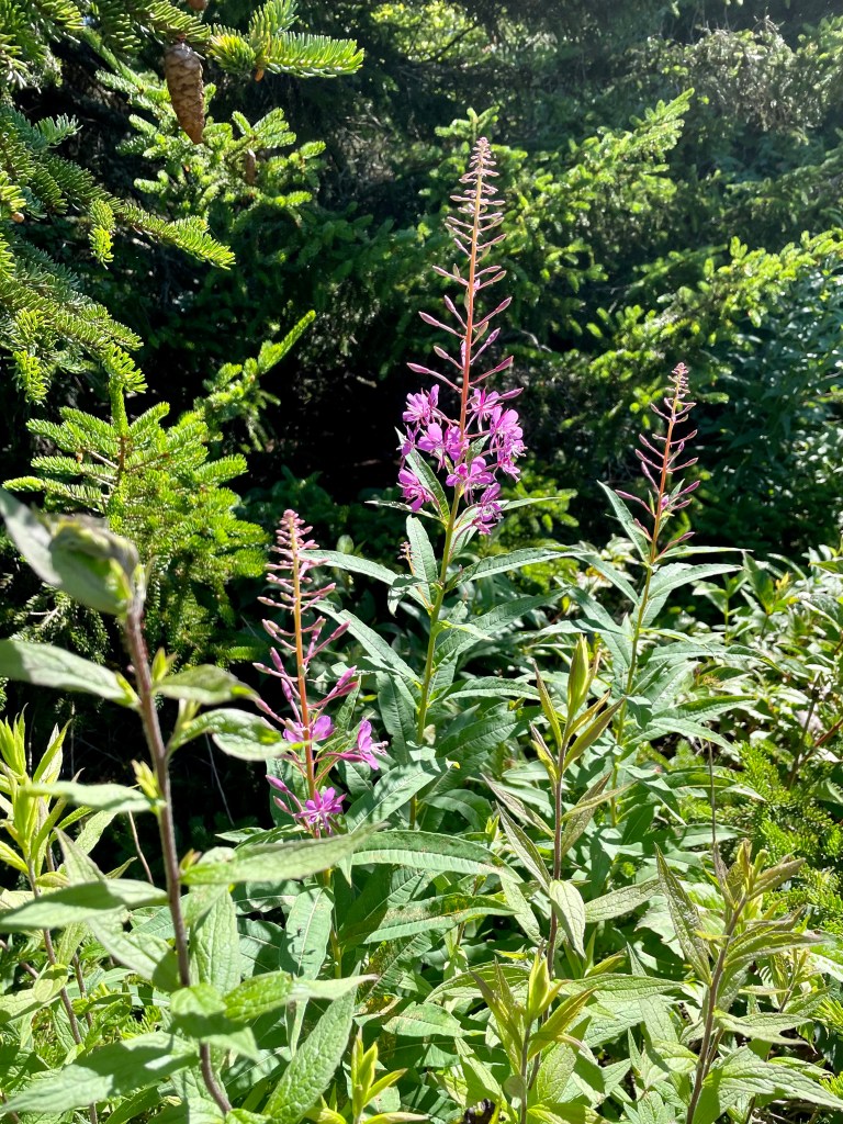 We walked the loop trail that leads from the parking lot and back. The scent of the spruce filled the air. Wildflowers and birdsongs were abundant. We basked in both.