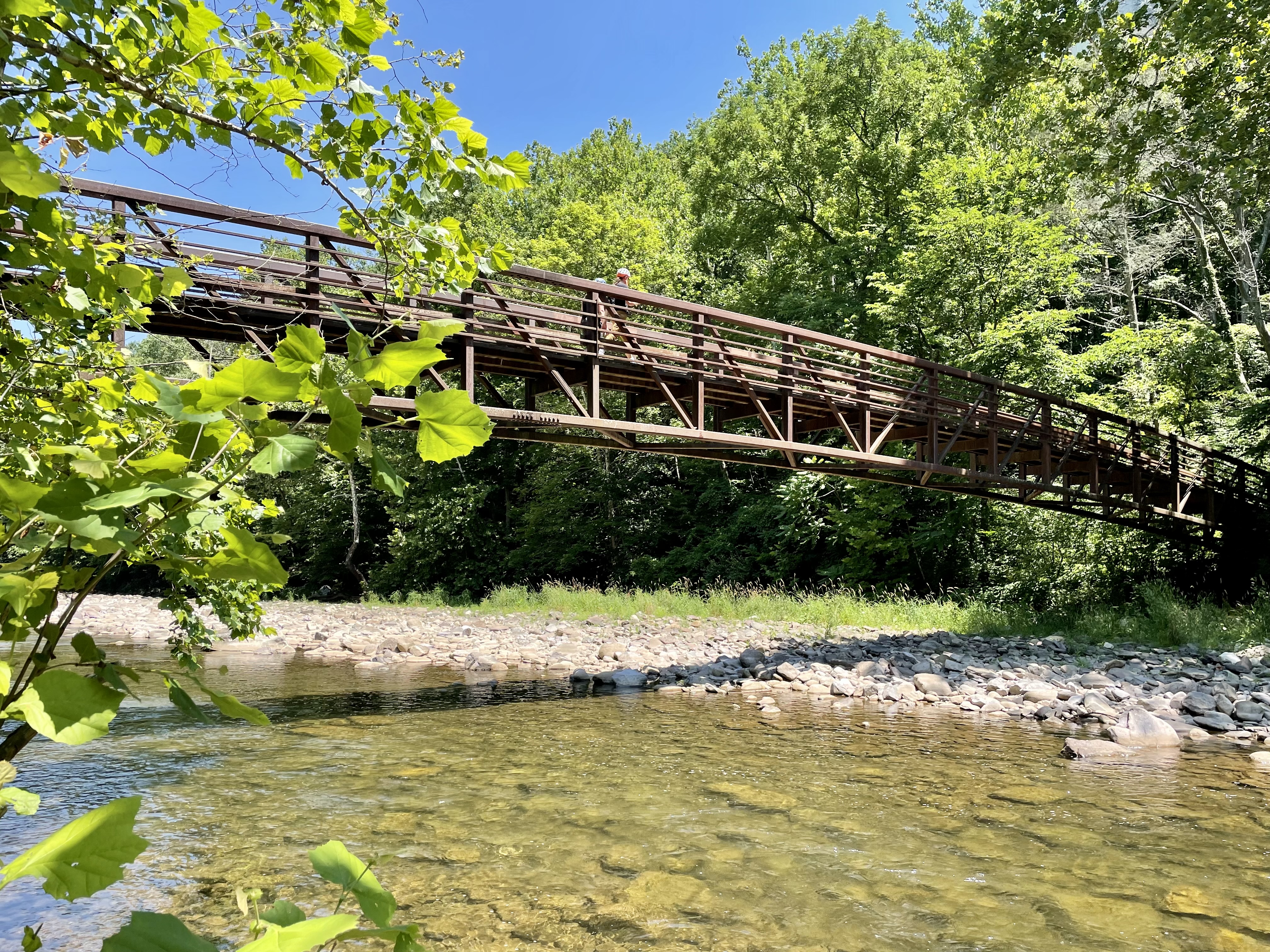 We gathered our things and headed up. The trailhead started at the North Fork of the South Branch of the Potomac River. The bridge that crosses it goes by the same cumbersome name.