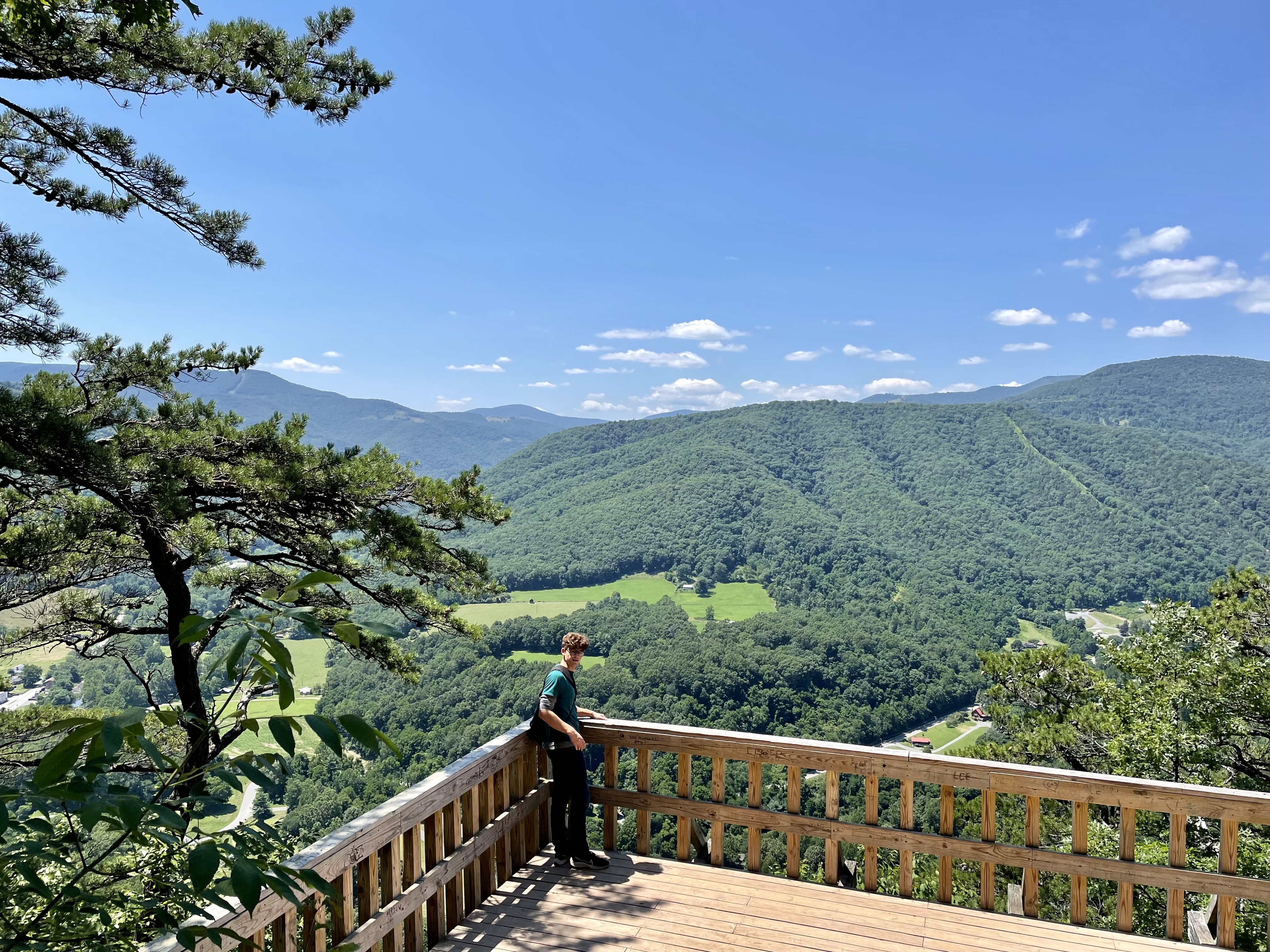Grandson Davis enjoyed the view from the overlook deck at Seneca Rocks, West Virginia.